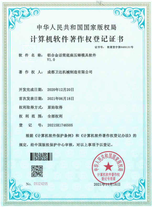 成都衛達機械制造有限公司是一家具有30余項專利、ISO9001:2015質量管理體系認證、安全標準化認證的民營獨資企業;是一家專業從事有色金屬高壓鑄造、壓鑄模具研發、設計、制造,鋁型材焊接、產品精密加工及產品表面噴塑的高新技術、專精特新企業。具有20年以上的生產經驗,為客戶提供專業、性價比高的關于產品開發--模具設計--模具制造--產品壓鑄--產品精密加工--產品表面處理等一條龍的解決方案。 公司產品涵蓋消防、閥門、LED、CNG/LNG、農機、衛星通訊、汽摩配件、建筑結構件、自動化零部件、出口鋁梯、燃氣輸配、消費電子等多個行業和領域,與幾十家國有控股、民營企業建立了長期合做關系,其中鋁型材焊接、精密加工產品已100%出口,部分系列壓鑄件也已遠銷美國、法國、日本、丹麥、瑞士、瑞典等國家。